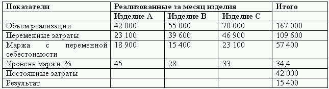 При простом «директ-костинге» определяется маржа с переменной себестоимости, которая представляет собой излишек выручки от реализации по сравнению с переменными затратами.