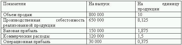 Себестоимость единицы продукции по методу полной себестоимости составляет 8,125 руб. Если это число использовать в качестве ориентира, то заказ будет не принят, так как предлагаемая цена ниже себестоимости. Но необходимо учесть тот факт, что распределение 250 000 руб. постоянных производственных расходов между 100 000ед. продукции, взамен 80 000ед. первоначальных снизит себестоимость единицы продукции, при этом метод распределения не имеет значения.