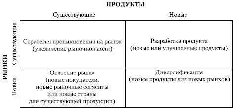 Рис. 4.1.6. Матрица Ансоффа (компоненты векторного роста)