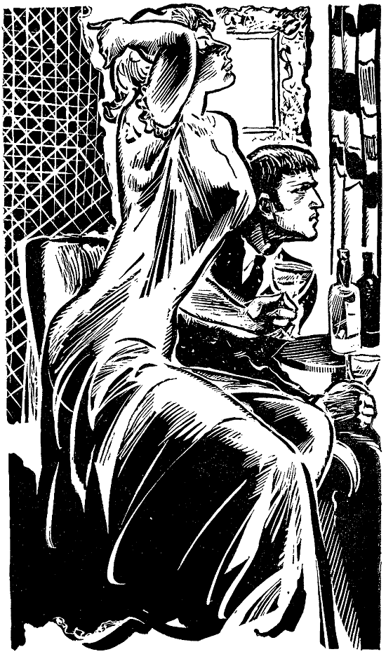 Беба перестала растирать виски, подперла ладонью голову, задумалась. Затем снова приготовила коктейль, разлила по стаканам, села. Однако села теперь не в свое кресло, а на подлокотник кресла Дамяна, при этом ее халатик случайно раскрылся и обнажил ногу выше колена.
